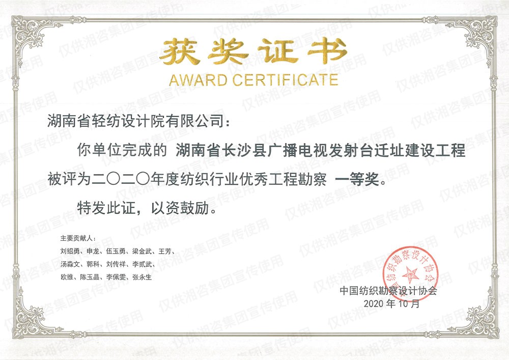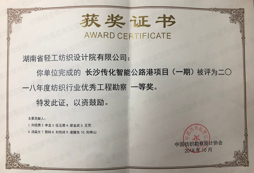 中國紡織勘察設計協會優秀工程勘察一等獎
