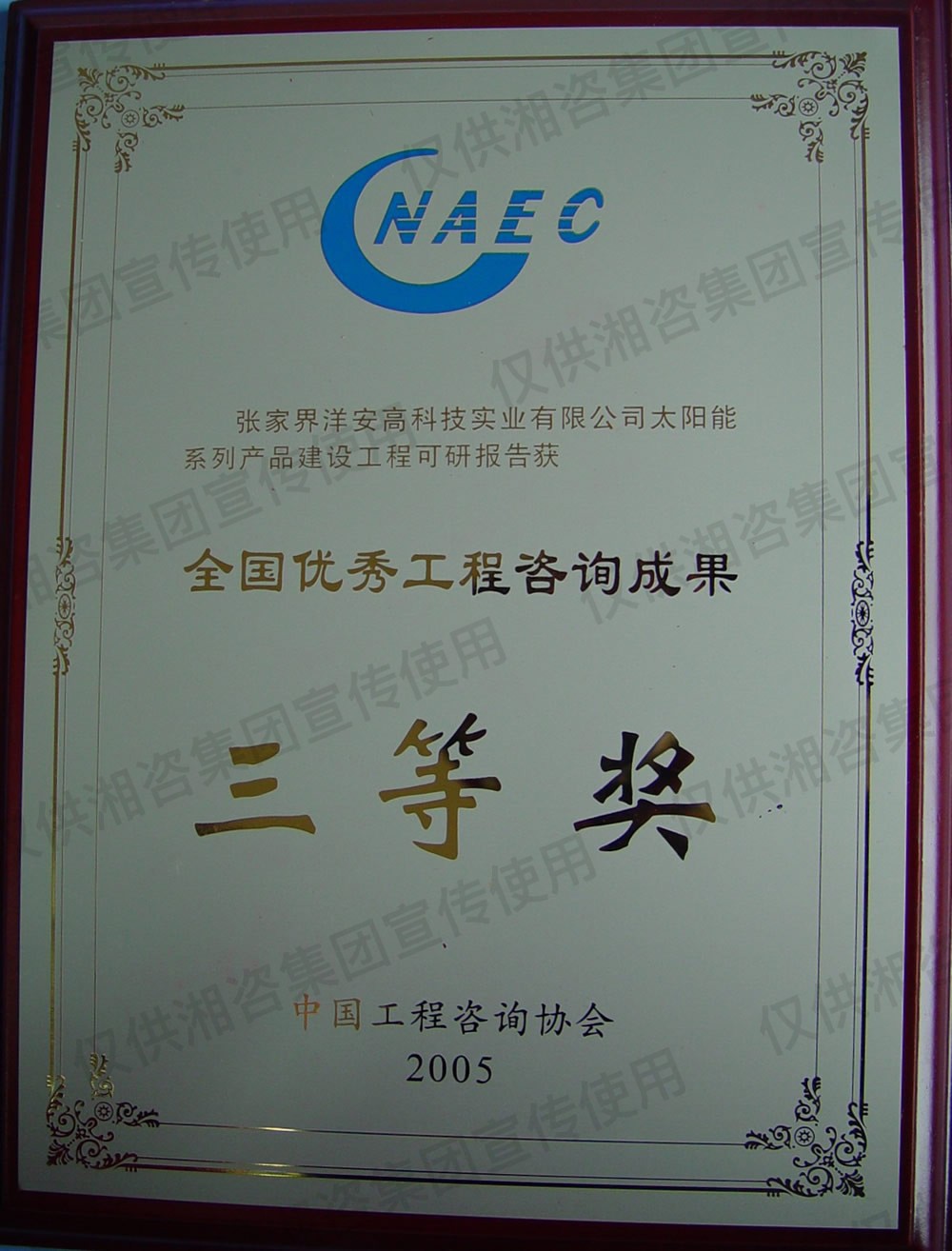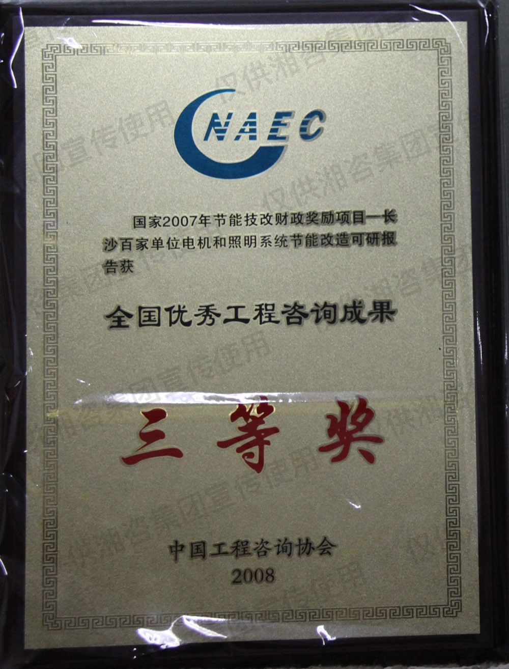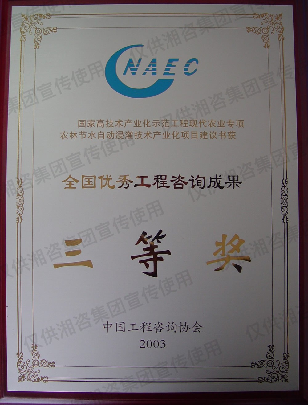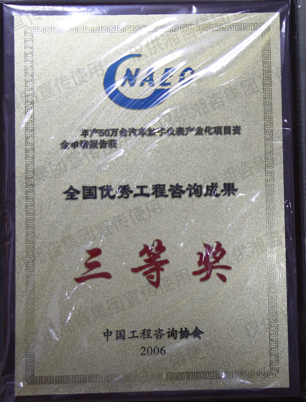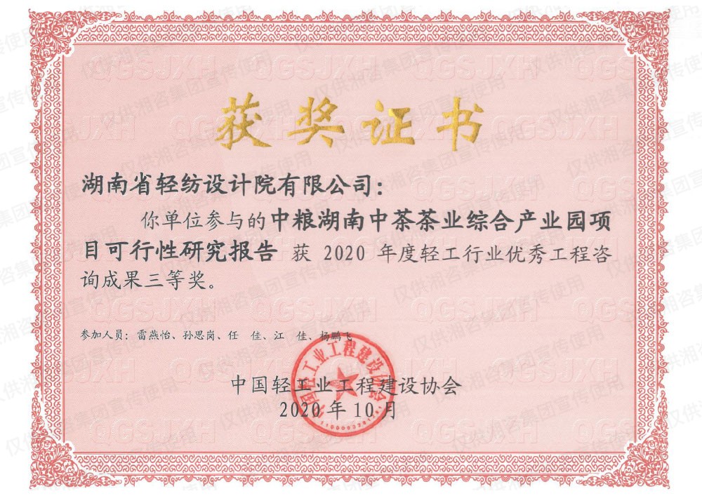 中國輕工業工程建設協會優秀工程咨詢成果三等獎