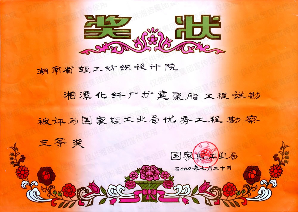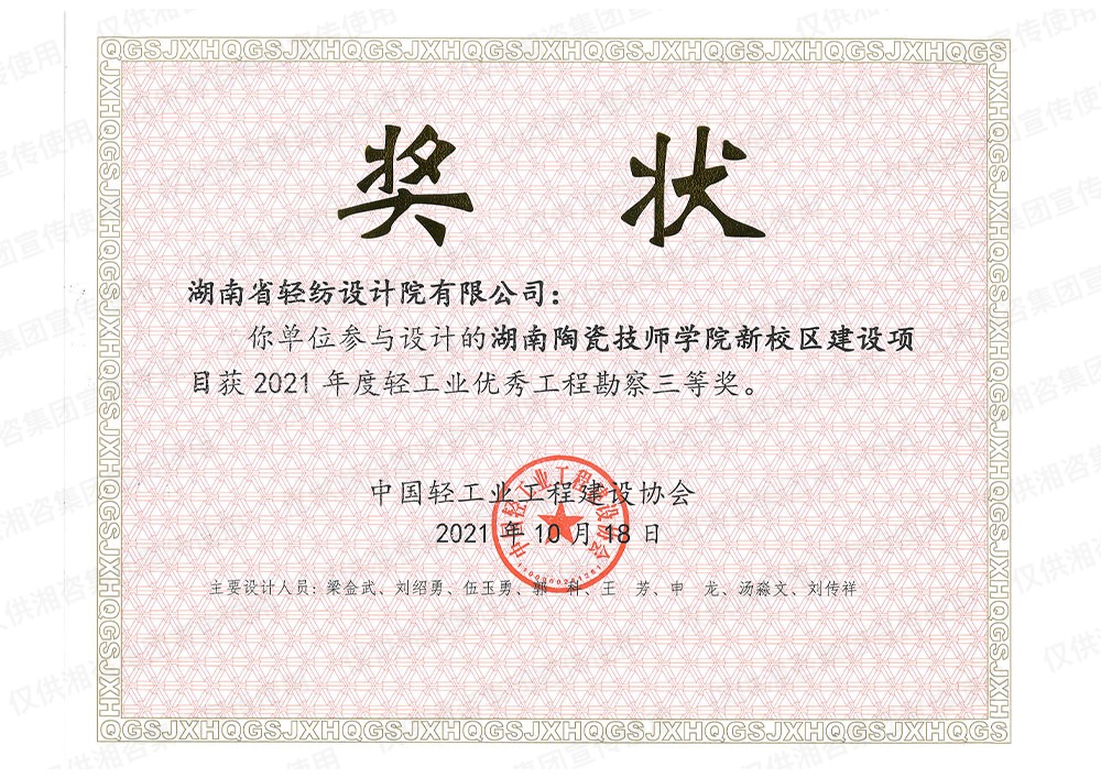 中國輕工業工程建設協會優秀工程勘察三等獎