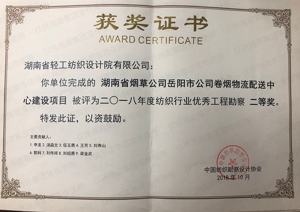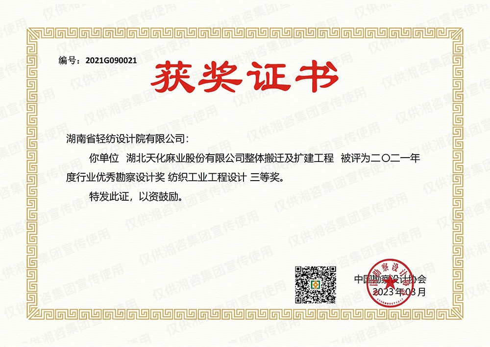 中國紡織勘察設計協會優秀工程勘察二等獎