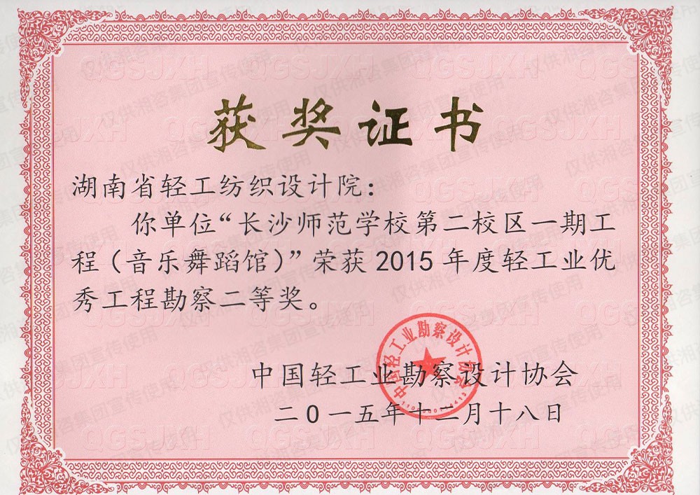 中國輕工業工程建設協會優秀建筑設計二等獎
