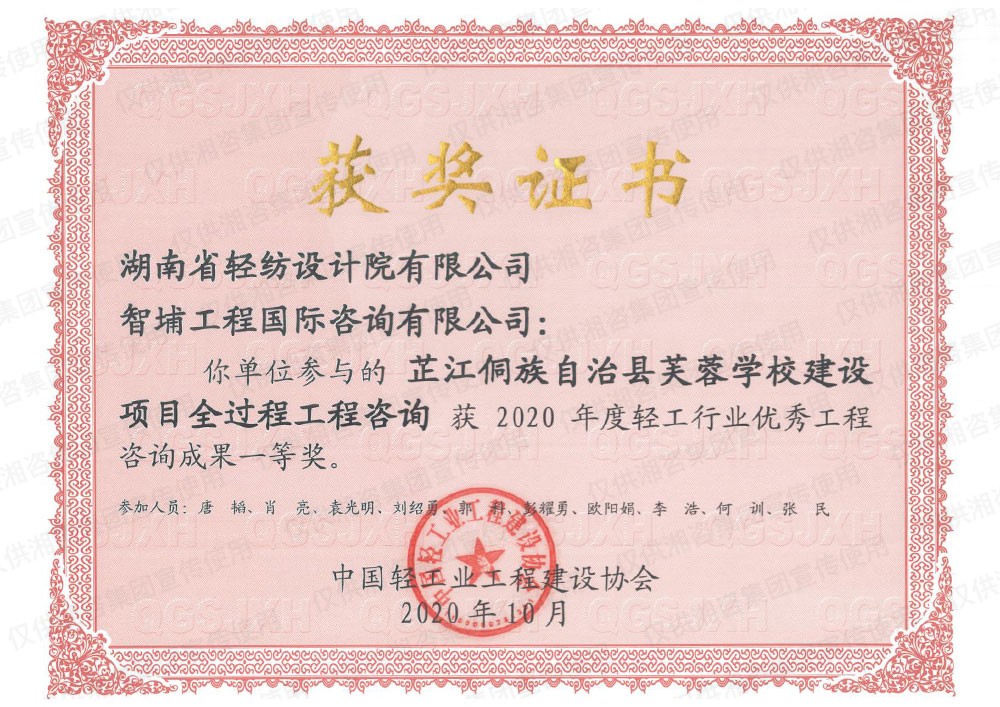 中國輕工業工程建設協會優秀工程咨詢成果一等獎