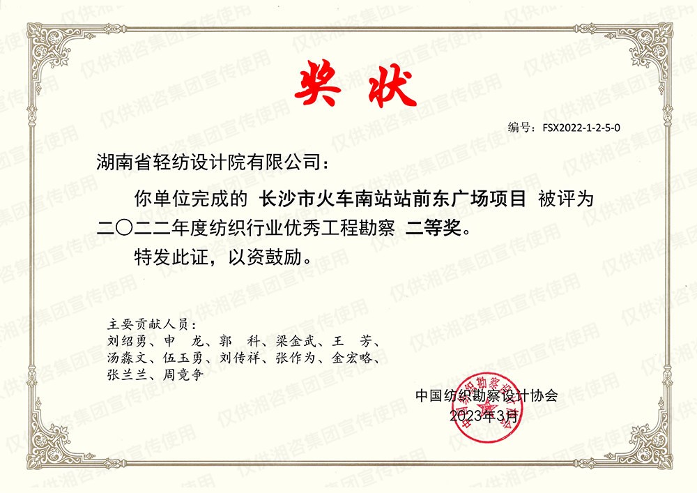 湖南省勘察設計協會優秀工程勘察設計二等獎