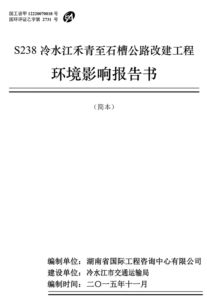S238冷水江禾青至石槽公路改建工程環評公示(簡本)