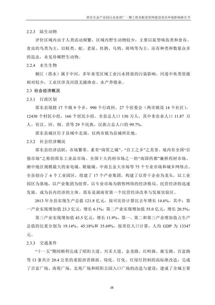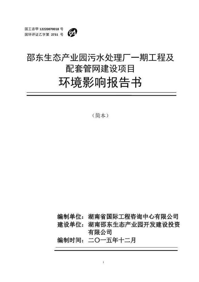 邵東生態產業園污水處理廠一期工程及配套管網建設項目環評報告書(簡本)