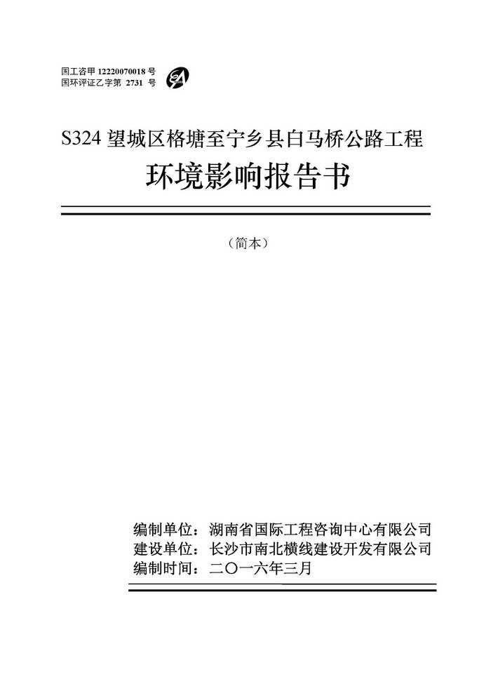 S324望城區格塘至寧鄉縣白馬橋公路工程環境影響報告書(簡本))