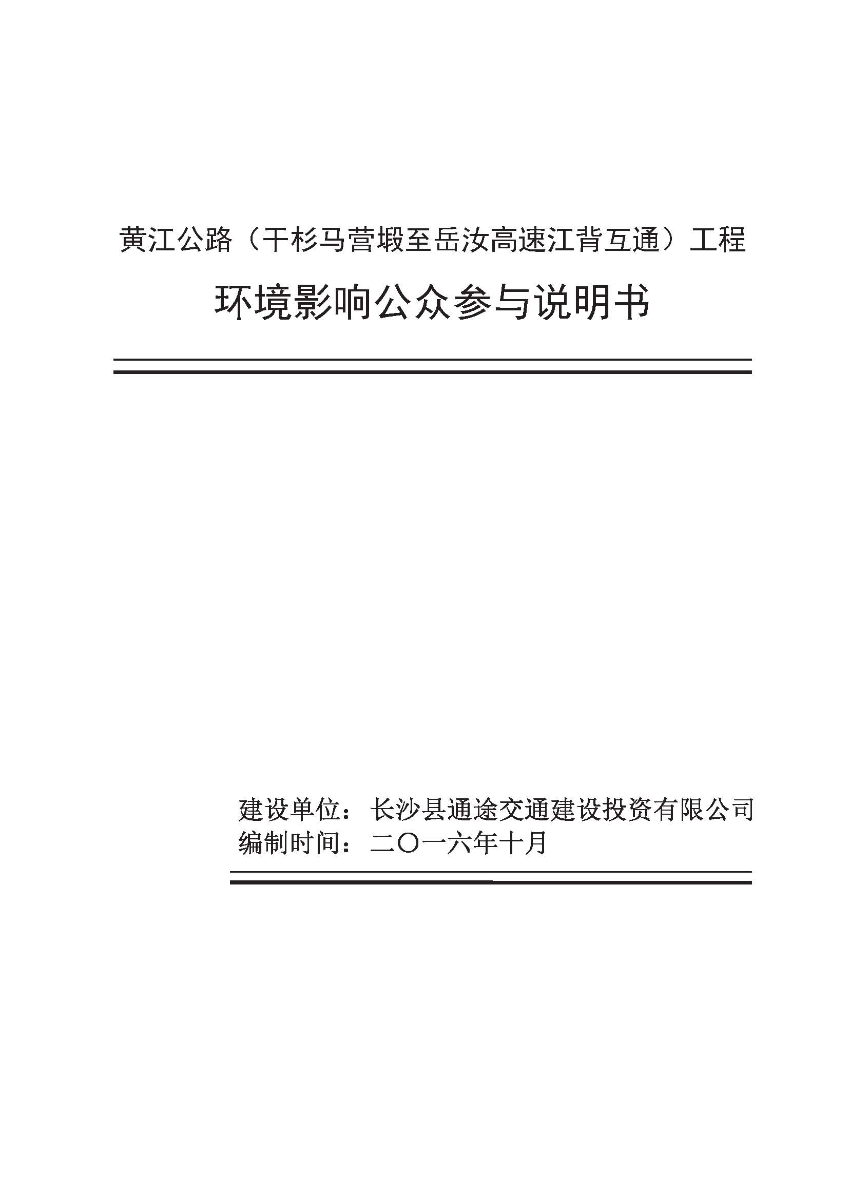 黃江公路(干杉馬營塅至岳汝高速江背互通)工程環境影響公眾參與說明書