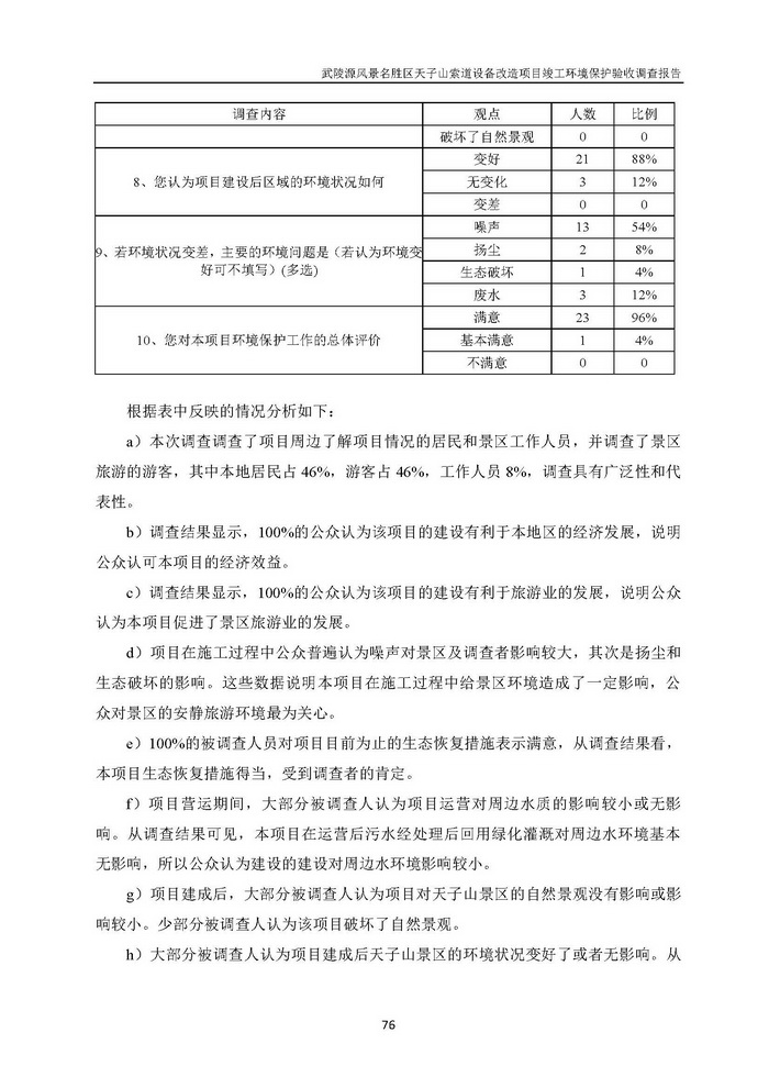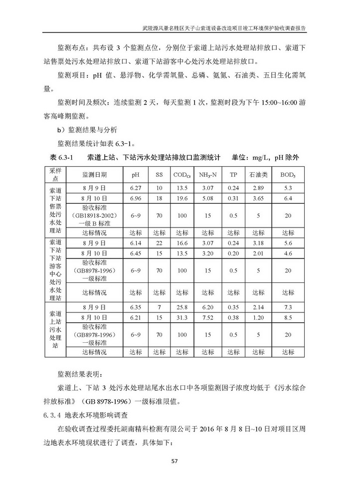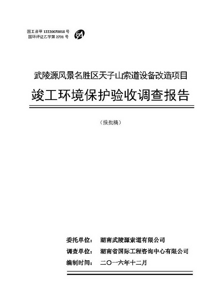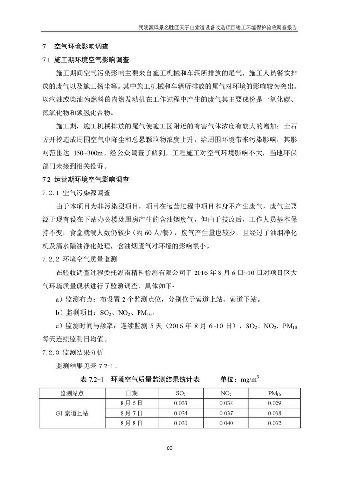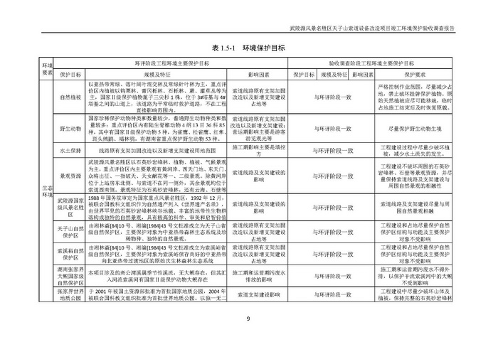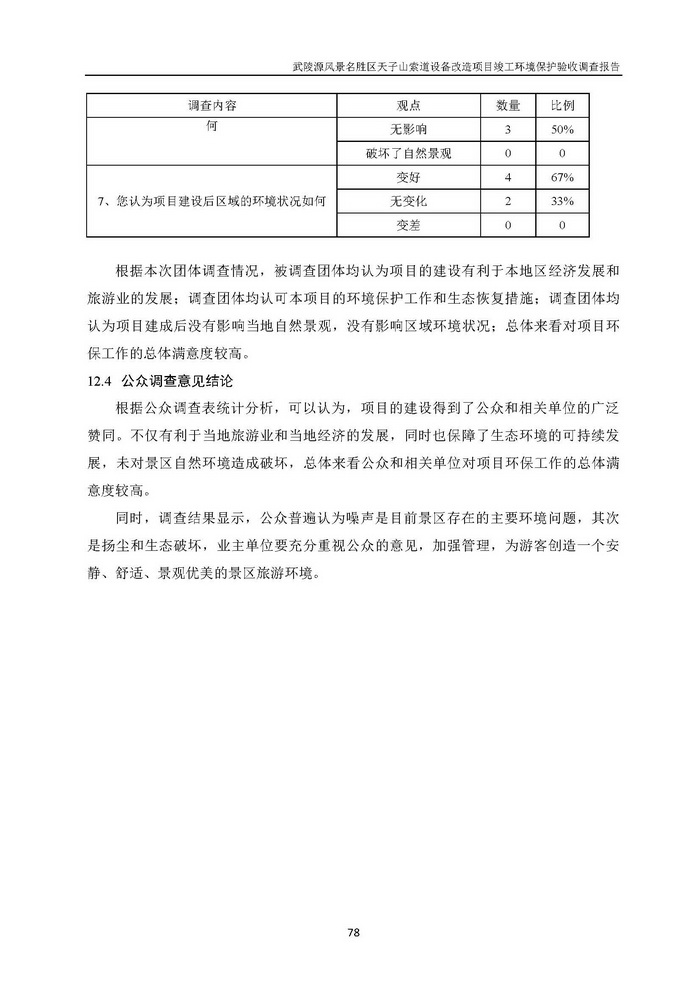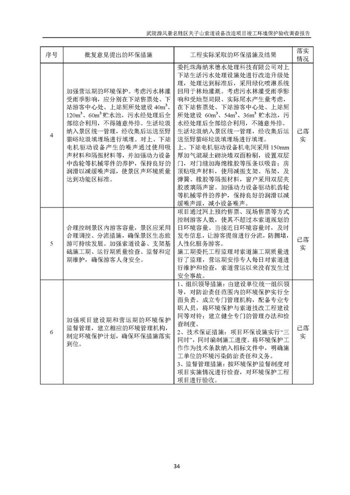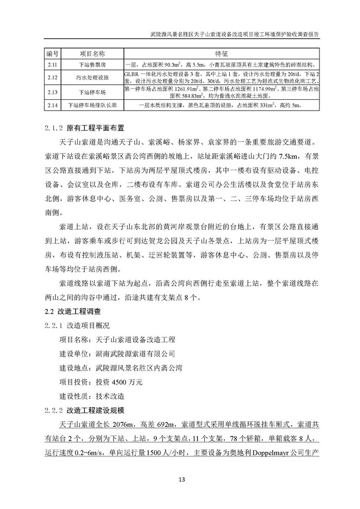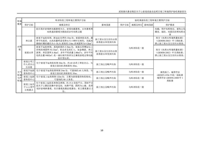 武陵源天子山索道設備改造駿工環保驗收調查報告