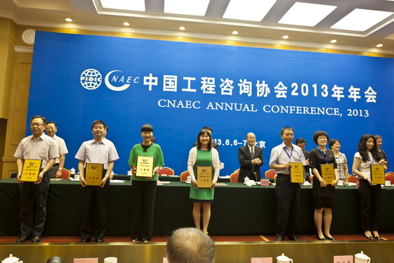 為了表彰和獎勵在我國工程咨詢業務中做出突出貢獻的集體和個人,推動全國工程咨詢業不斷提高服務質量和水平,更好地為經濟建設服務,年會還舉辦了2012年度全國優秀工程咨詢成果頒獎儀式。我中心編制的《湖南省“兩型社會”建設重點課題——長株潭城市群供水安全提質方案專題研究報告 》獲得全國優秀咨詢成果二等獎,并作為推選的30個獲獎代表之一上主席臺領獎。