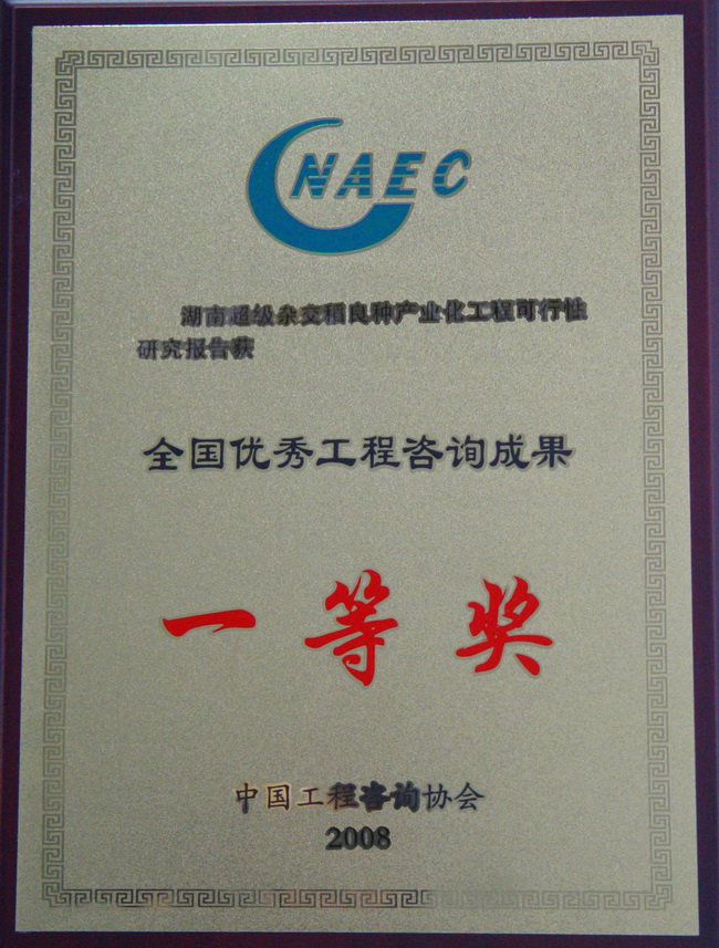 我公司在超級雜交稻良種產業化思路的提出、產業化體系的構想、建設方案的論證等方面開展了大量深入的研究,從工程咨詢單位的角度作出了獨特貢獻,體現了工程咨詢的價值。項目建設內容提出了超級雜交稻研發體系建設、超級雜交稻種子生產體系建設、超級雜交稻推廣服務體系建設,三大體系環環相扣,打造全過程超級雜交水稻研發平臺。項目共完成總投資32億元,項目咨詢成果獲湖南省和全國優秀工程咨詢成果一等獎、獲菲迪克百年工程項目唯一的農業項目紀念獎。