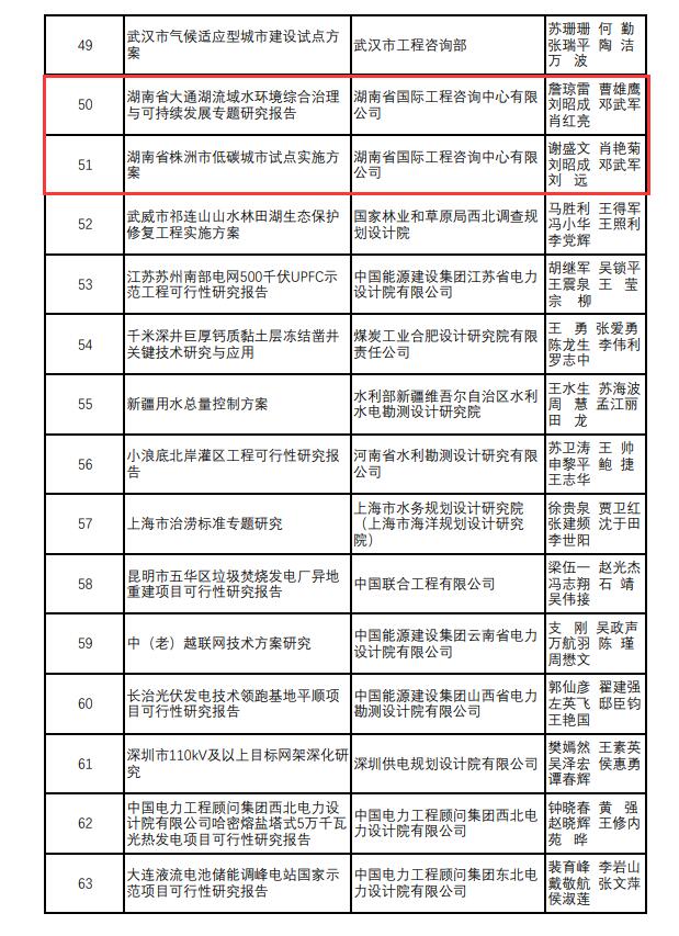 中國工程咨詢協(xié)會組織的“全國優(yōu)秀工程咨詢成果獎”是工程咨詢行業(yè)含金量最高的獎項,每兩年評選一次。此次參與申報評獎的工程咨詢單位來自全國各行各業(yè),大部分為實力雄厚的國家級和省級工程咨詢單位。申報咨詢成果經(jīng)層層評選后確定一等獎113項、二等獎166項、三等獎210項、優(yōu)秀獎53項。湖南省咨詢單位本次共獲二等獎4項、三等獎5項。省咨詢公司作為湖南省內(nèi)唯一的綜合甲級資信單位,獲得了其中的3項,占湖南省咨詢單位獲獎項目總數(shù)的三分之一。