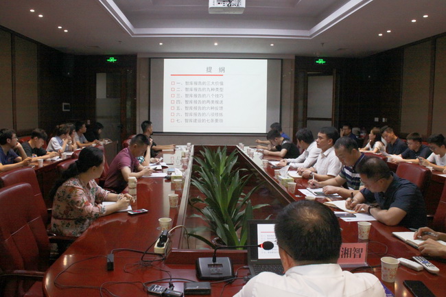 為推進智庫高水平建設和高質量發展,提升員工咨政諫言能力與素養,7月28日上午,省咨詢公司特邀請湖南省社會科學院智庫辦主任周湘智作了一場題為“撰寫出彩咨政報告—基于模式與案例的實戰技術”的專題講座。講座由公司黨委副書記、總經理曹雄鷹主持,黨委委員、紀委書記朱燕及各部室、子公司、分公司代表參加。