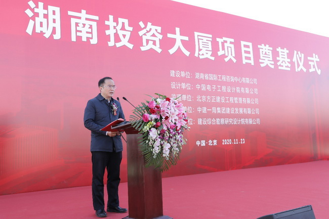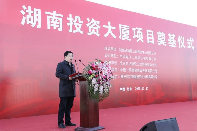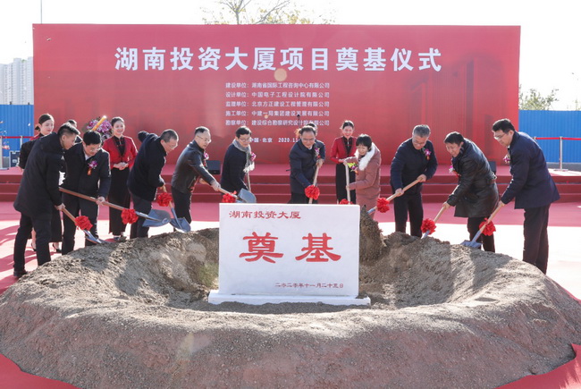 11月23日上午,(北京)湖南投資大廈項目奠基儀式在北京市豐臺區(qū)麗澤金融商務(wù)區(qū)隆重舉行。湖南省發(fā)展改革委黨組成員、湘西辦主任杜中華,湖南湘投控股集團(tuán)公司黨委書記、董事長鄧軍民,黨委副書記、董事張崇政,北京麗澤金融商務(wù)區(qū)管委會副主任關(guān)芳,北京麗澤金融商務(wù)區(qū)控股公司董事長楊友強(qiáng),湖南省國際工程咨詢公司黨委書記、董事長詹瓊雷,黨委副書記、總經(jīng)理曹雄鷹,中建一局(集團(tuán))有限公司副總經(jīng)理左強(qiáng),中建一局建設(shè)發(fā)展有限公司董事長廖鋼林等近百人出席奠基儀式。儀式由張崇政副書記主持。