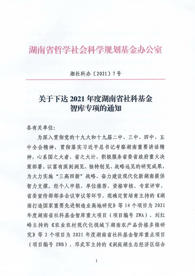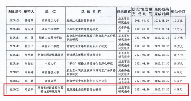 近日,湖南省哲學(xué)社會科學(xué)規(guī)劃基金辦公室公布了《關(guān)于下達2021年度湖南省社科基金智庫專項的通知》(湘社科辦〔2021〕7號),省咨詢公司生態(tài)規(guī)劃咨詢部憑借在生態(tài)文明建設(shè)、區(qū)域經(jīng)濟規(guī)劃領(lǐng)域的專業(yè)經(jīng)驗與過硬實力,以《洞庭湖生態(tài)經(jīng)濟區(qū)綜合研究》項目成功入選。