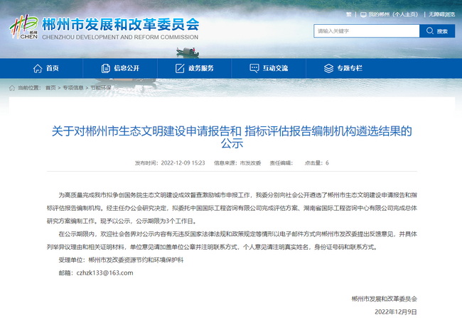 喜訊 | 省咨詢公司成功中標郴州市生態文明建設成效總體研究方案