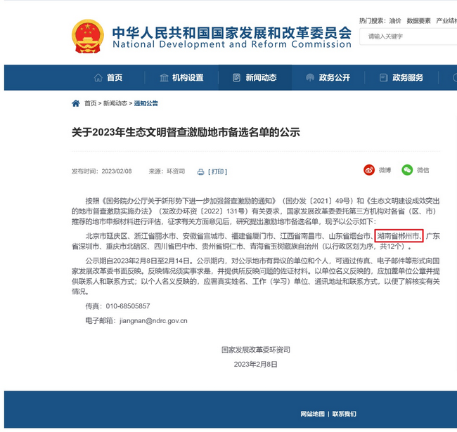 喜訊 | 省內唯一!省咨詢公司助力郴州成功入選2023年生態文明督查激勵地市名單