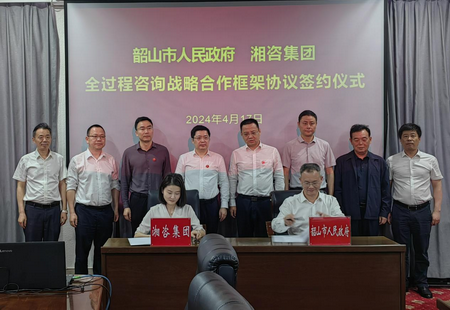 4月17日下午,湘咨集團與韶山市人民政府舉行全過程咨詢戰略合作框架協議簽約儀式。湘咨集團黨委書記、董事長、總經理詹瓊雷,韶山市委書記曹偉宏出席座談并見證簽約。
